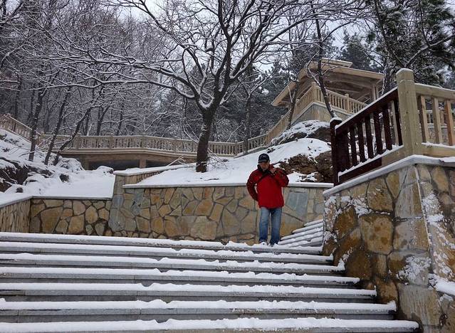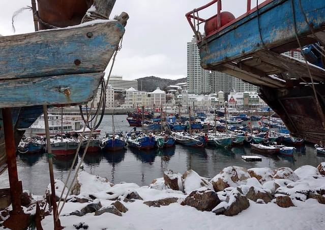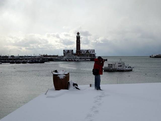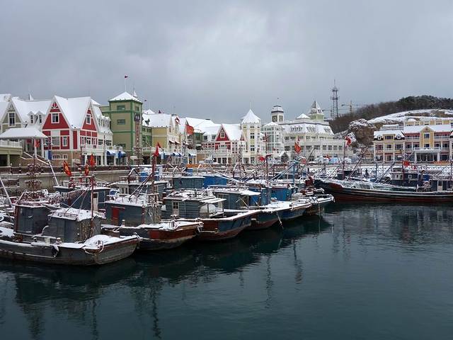 由于大雪封路,我们到时,虎滩渔港和渔人码头基本没有人。皑皑白雪,使这里变成了童话世界,美不胜收。一边欣赏雪景,一边按动快门,不知不觉就到了中午。就在渔人码头吃了午饭,下午回家时,公交车已经通了。