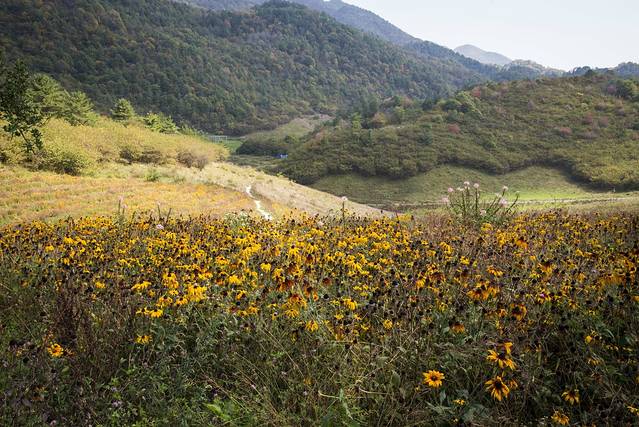 景区门口有很大面积的花海,只是花已凋谢,很是遗憾。