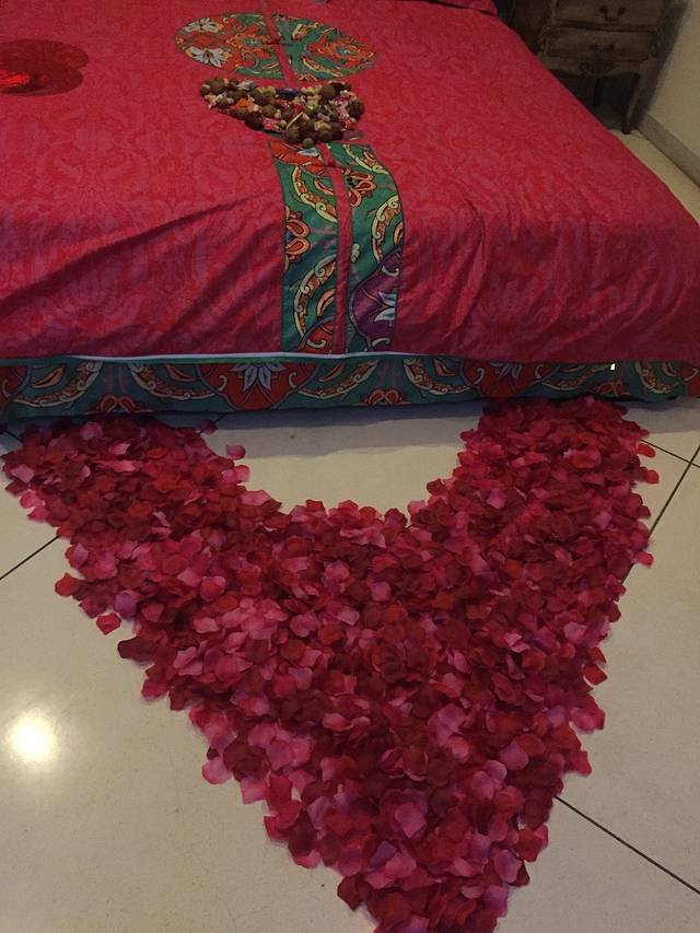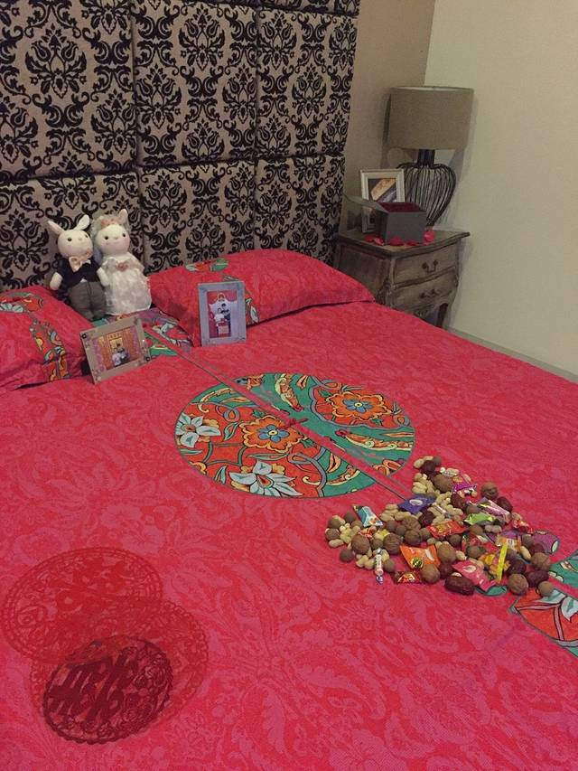因为我们是全家出游,而且也为了拍摄效果好,如果住酒店不太方便,我在住百家上租住一个别墅,很喜欢这种全家住在一起,但是又有各自的空间的住宿环境。我选定了这个别墅之后,婚庆还特意去实地考察了一下,觉得很完美。这样入住五晚,6077。刘先生就是这点不好,照相技术太渣,完全没照出我千挑万选的别墅的美感。房东得知我们是来举办婚礼的,还贴心的帮我们布置了浪漫的婚房。