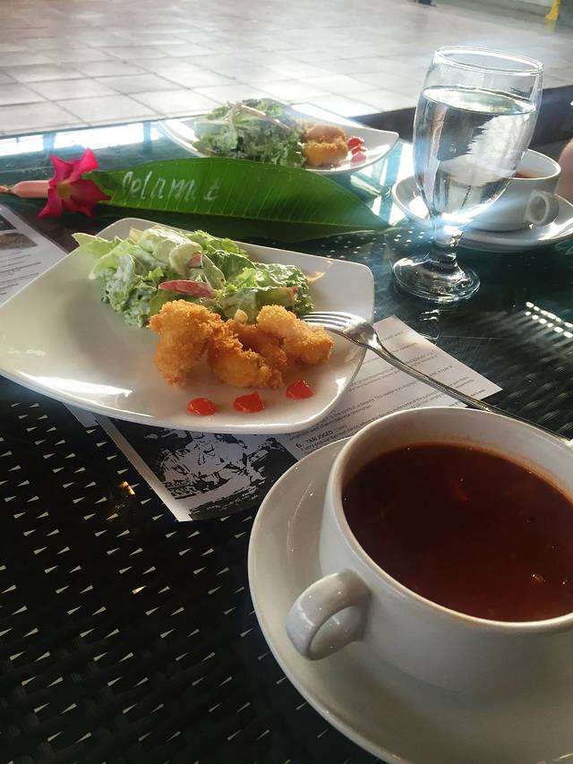 利用等待神鹰广场传统舞蹈表演的一个小时,我们在旁边的餐厅喝了下午茶,这家环境非常好,有人在现场弹奏巴厘岛的传统音乐,每个服务员都是笑脸盈盈,推荐。