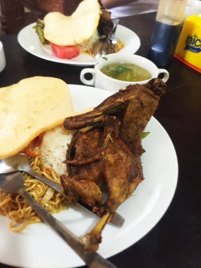 在乌布吃了巴厘岛著名的脏鸭餐,为什么叫这个名字呢?Jimmy说是因为鸭子散养在巴厘岛有名的水稻田里,吃野外小虫小鱼,常常搞得浑身泥巴。巴厘岛最好的脏鸭就在乌布了。很多人都很喜欢,说实话面条和虾片非常好吃,晚上我还去超市买了一些虾片,鸭子我不喜欢太油了