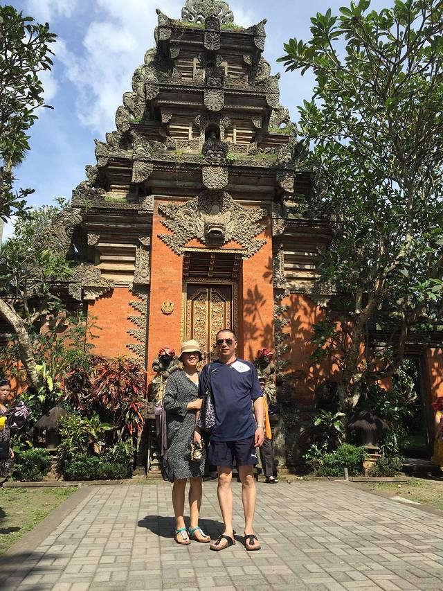 33度的天气,我们的导游Jimmy如约而至,当地的小姑娘为我们带上了鸡蛋花。这里说一下,导游是婚庆帮我们订的,华裔,中文很好,知识丰富,很细心(这会在后面的旅程有很大的体现)。巴厘岛每个景点之间离得并不是很近,所以建议包车,我们的司机五十多岁了,但是车技超级好。现在就让我们一家人带你感受巴厘岛的浪漫,人民的友好吧!