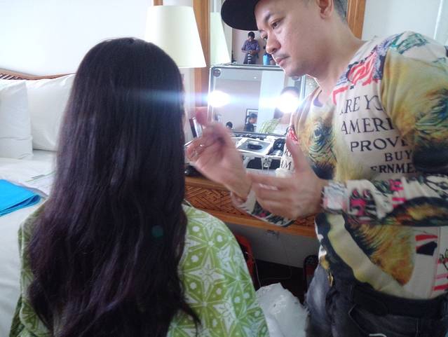 开始画婚纱的妆了,有三位化妆师帮我画完美的妆,照片上这位也是华裔,但是他不会说中文,还跟我聊起来过几天就要在阿雅娜办婚礼的刘诗诗和吴奇隆,下午拍婚纱照的地方离那非常近,好激动呀!