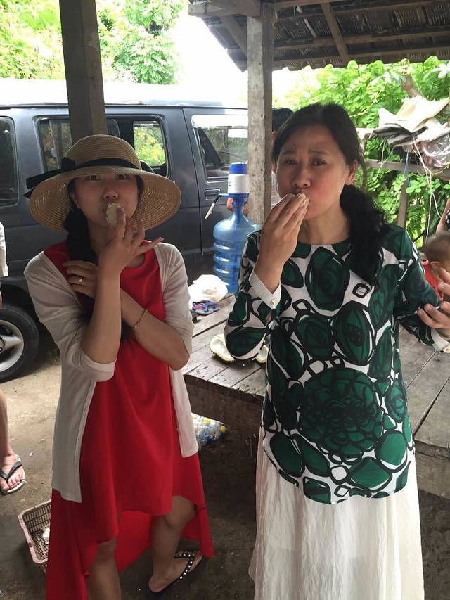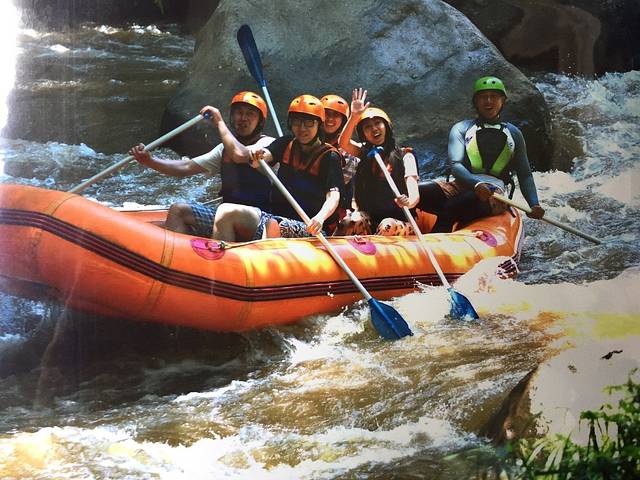 因为来之前下雨了,漂流很刺激,沿途有休息站,可以买一些饮料水果,会记在单子上,到下面结账。我们当场吃了一整个榴莲,买了一袋山竹,可以砍价。教练很健谈,还唱了《月亮代表我的心》。关键是他一直以为我18岁,哈哈!