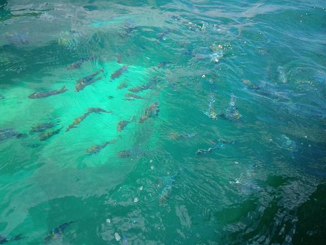 快艇会在海中停留片刻,便于我们给小鱼喂面包渣。这边有很多海上娱乐设施,有兴趣的朋友们可以尝试一下。