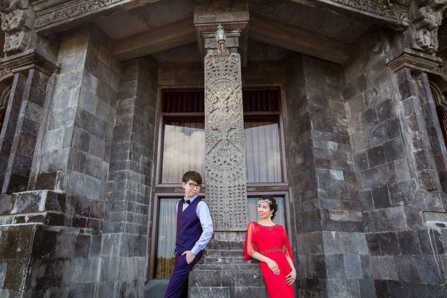 吃了简餐,录完音,用于编辑MV,就出发到外景拍摄地之一,国家博物馆。恢弘的火山石建筑,我选择艳丽跳跃的红色,和它产生强烈的撞击感,但是看了照片又很和谐。也碰到了很多其他的新人在拍婚纱照,看到他们多数都是好几组就跟一个摄影师和化妆师,我妈妈对于我们选择悠悠奔途非常满意。因为有一队非常专业摄影师、摄像师、化妆师,助理和翻译为我们服务。在我们拍婚纱照的时候,也不用担心爸爸妈妈没有事情做,因为Jimmy会带他们参观国家博物馆。