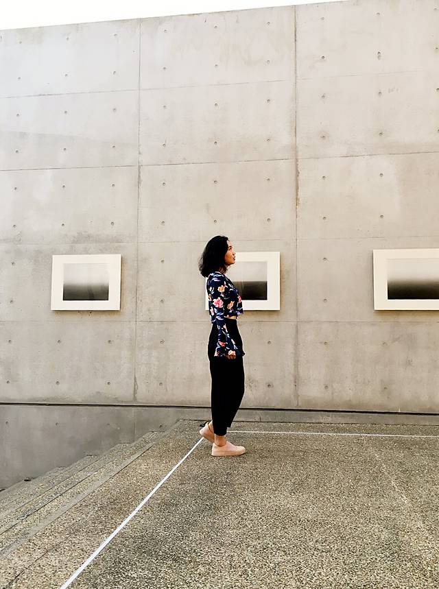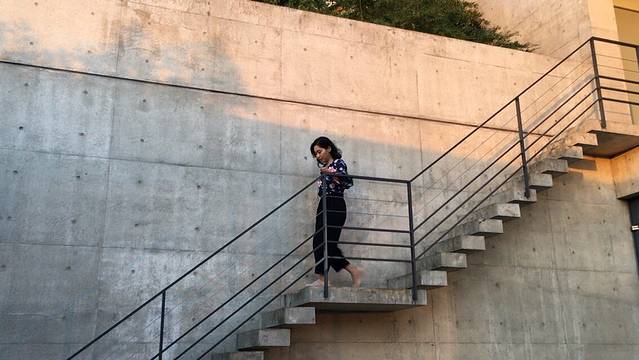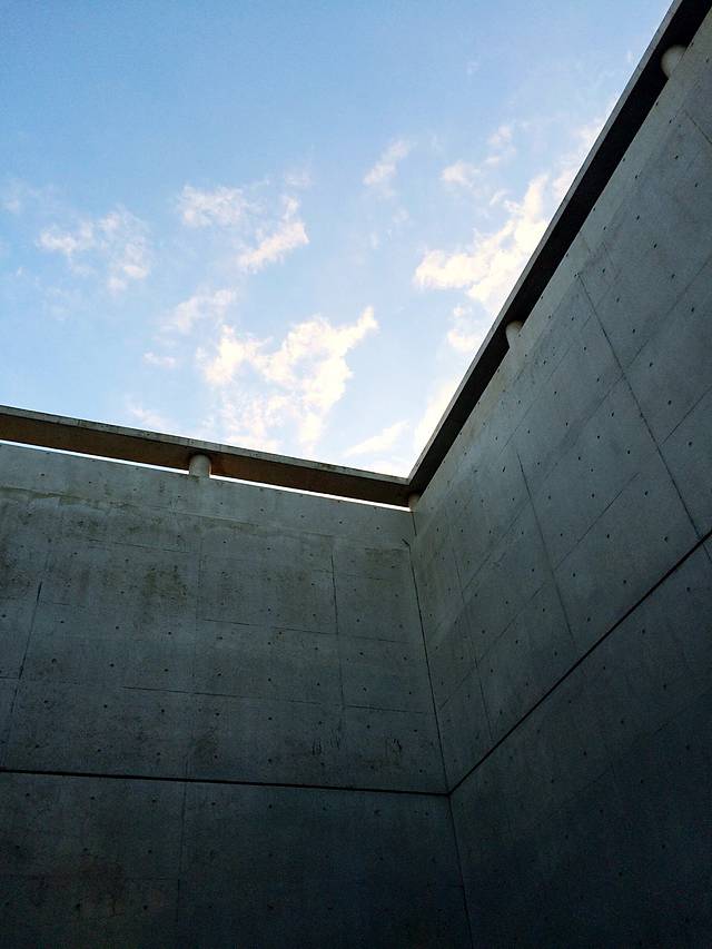 美术馆又一个露天的楼梯通往露台,墙面是安藤忠雄最标志性的设计。