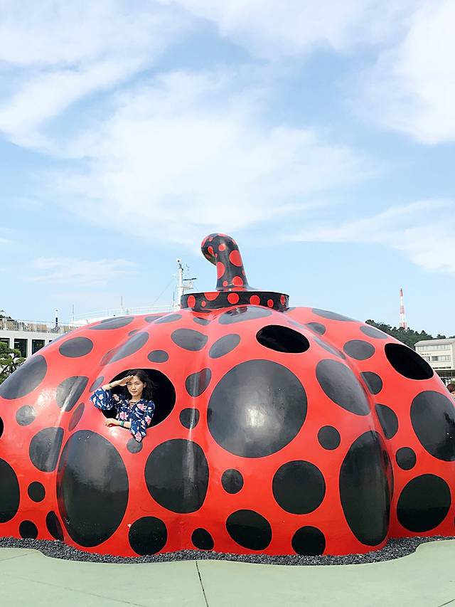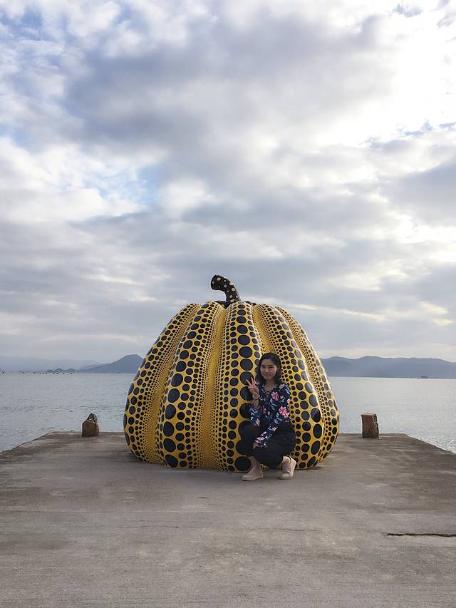 直岛有两个港口,从高松去的时候是从宫浦港下船。一下来就能看见红色大南瓜,南瓜里面是空心,可以跑进去玩~
