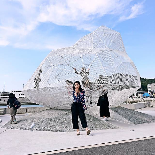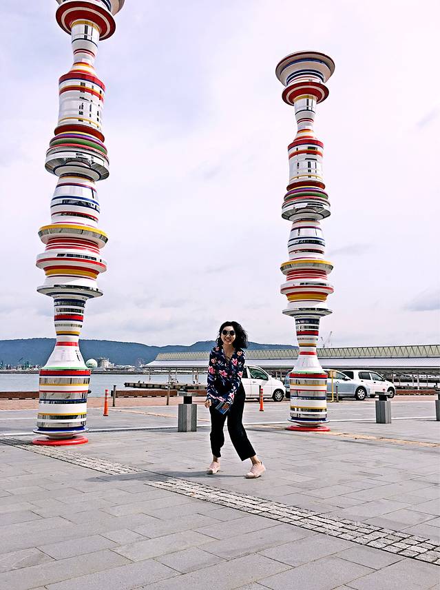 租了自行车就可以自由行动,来到高松港的Sunport,一边欣赏海景,一边还能欣赏艺术家的作品。