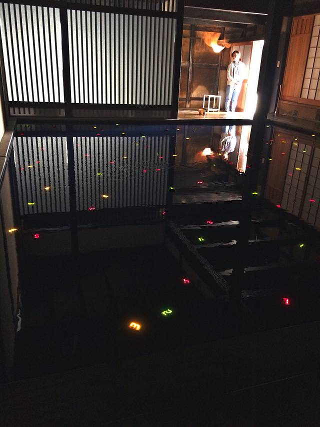 艺术装置——角屋,房间里的水池里有好多led数字灯不停变换。