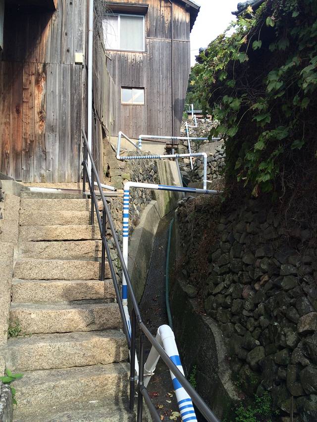 墙上的艺术,遍布整个男木岛。男木岛回高松的最后一班船是17:00,记得赶在那个时候之前回去港口等船哦~