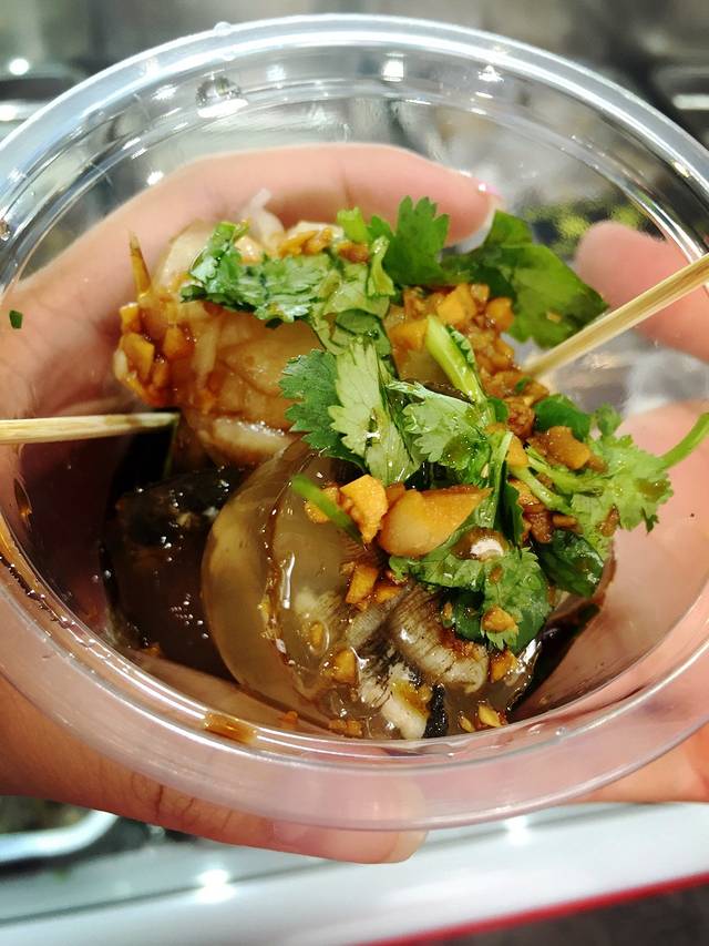 和大学同学约了中山路见面,在异地出差和老友相聚的感觉真好,尝试了当地出名的土笋冻。我比较敢于尝试未知的事物,这种海虫子吃起来有点脆脆的感觉,很不错,推荐。