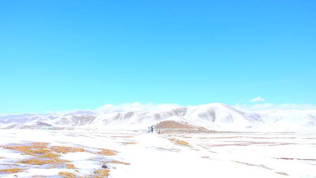 通往祁连山草原的路边雪景!