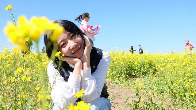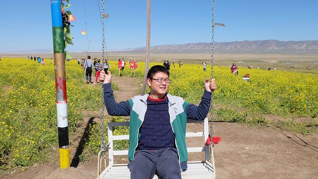 荡秋千的我的老公兼司机以及背后被踩坏的油菜花之我们给了门票钱还是进去了!