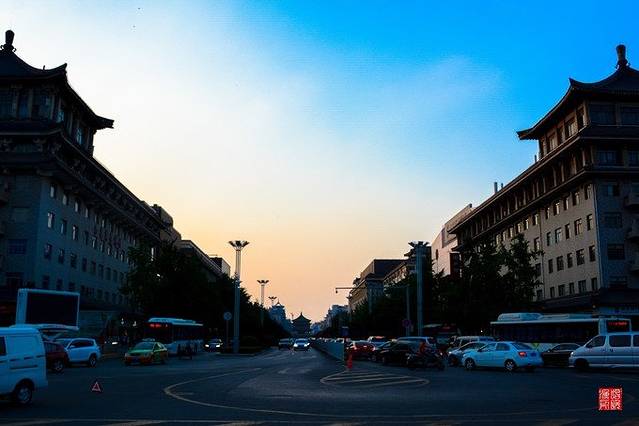 西安的街景也很棒,就是我拍不清楚夜景,就不上了。拿日暮时分的勉强看看。