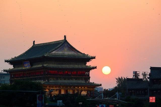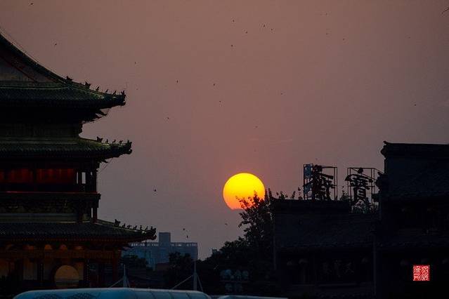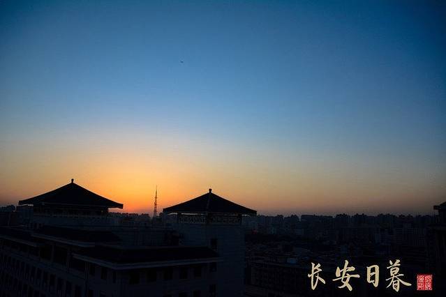 以前旅游去山上看日出,海边看日落,太阳总是跳一下就落下了。在西安看的日落足足看了大十几分钟,看着天空金黄和宝蓝色渐变,太过瘾了。