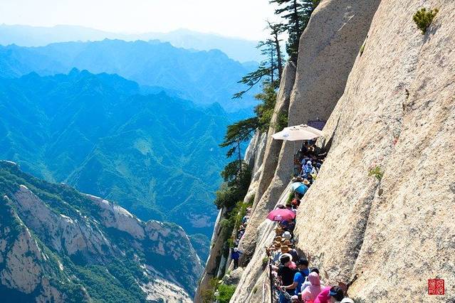 华山还是有一些路比较陡,有将近7、80度。挂单反上这些路的时候一定要放在相机包里! 我挂在脖子上上的时候,相机荡来荡去磕在山石上,心疼死了。