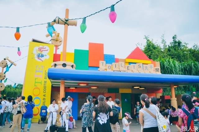 充满童话色彩的洗手间,把洗手间也当成是乐园色彩与视觉的一部分。 乐园里面,每个建筑,每一个场景,甚至说每一个垃圾桶都是独特的,有个性的,感觉整个乐园里都是有活力的,生机勃勃的。