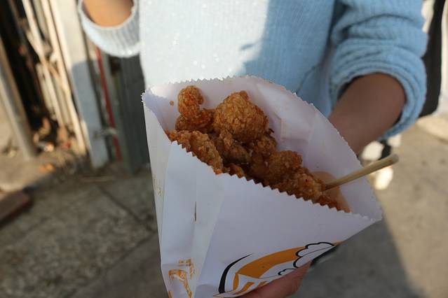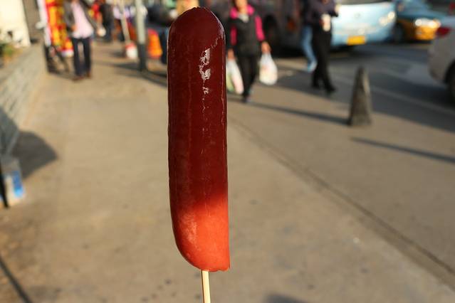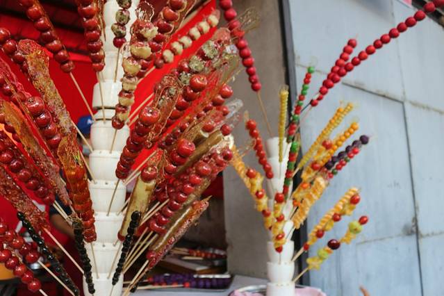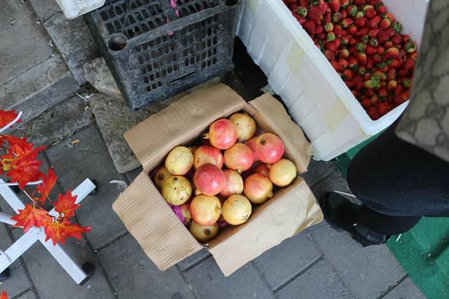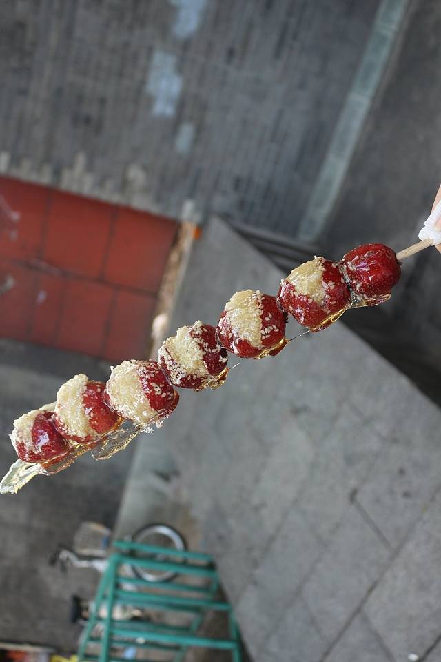 这边卖烧饼的,卖鱿鱼的,板栗,山楂,石榴,大枣,比较多,还有一些就是红叶标本,没有我去年去的时候多,去年老酸奶3元吧,今年已经是4元5元,物价上涨啊。
