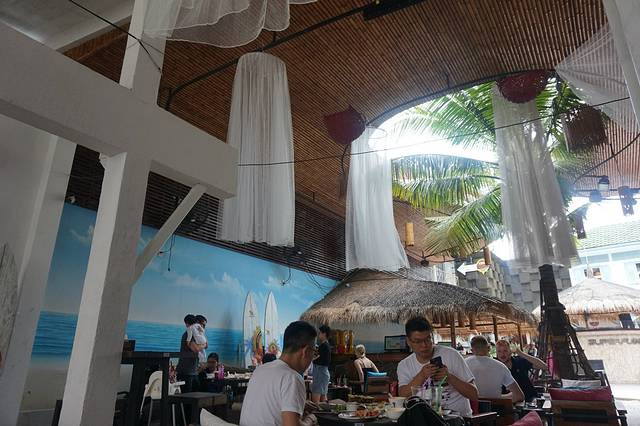 商店外面有一个休闲让人歇脚的地方,风景真不错。