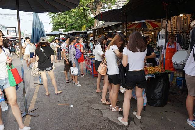 由于是国庆长假,我们担心一大早会塞车,所以我们是提前一天到达澳门的,做好过关,事实证明我们的担心是必须的,从排队过关到到达机场我们整整用了两个多少小时的时间,十一当天泰国时间12:35我们到达了廊曼机场,出到机场门口租了一辆计程车,直奔我们事先预定的酒店,稍事休整,就让酒店工作人员帮忙预定了一台出租车,搭我们去著名的加都加周末市场。到达加都加周末市场大概要中午三点半到四点的样子了,真实饿死宝宝们了,来到美食的天堂当然要大开吃戒了,管不了那么多,吃了再说。加都加周末市场真的很多东西逛,一个大棚里面分了很多间小店,卖衣服的,卖小食的,不过大概到了傍晚六点里面就收摊了,不过外面大路还是灯火通明,热闹非凡,那边有几家做脚底按摩的,走累了还可以选择在那边马杀鸡一下,不过记得如果穿拖鞋的话,让她最后抹多点爽身粉,不然脚底会很滑,待会走路就会有点不方便哟。