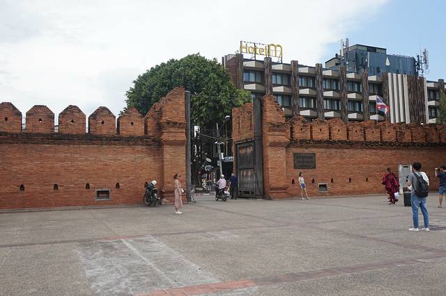 时值中午,正是吃货吃饭的时间,先填饱肚子再说,塔佩门走进去就是清迈古城了,古城被一条河包围,呈现方形,每个方位都有一个像塔佩门的围墙围着,不过建议大家还是去到就租辆摩托车到处飞哈,因为走路也是很累的