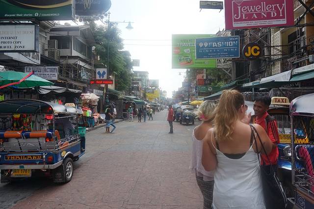 逛完大皇宫没有什么心思逛其他的寺庙了,直奔我们下一个景点----考山路,听说是背包客的天堂,当然我们也饿了,开了谷歌导航,考山路距离大皇宫也是很近的,不过要穿过一些小路才能到,原本我们都以为自己走错了,走到死胡同里面,不过问路之后才知道原来那条我们以为的死胡同原来正是通向考山路的,怎么说呢,考山路很多吃的,晚上小摊也很多,一条路商店淋漓。
