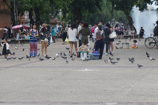塔佩门外面有一处广场,周六就会有夜市,平常喂鸽子的,很多白鸽聚集在这里,也有人在兜售玉米粒等喂鸽子的东西,不贵,软妹币几块一包,可以吸引一堆鸽子过来凹造型拍照哈,鸽子齐飞的画面也是很美的