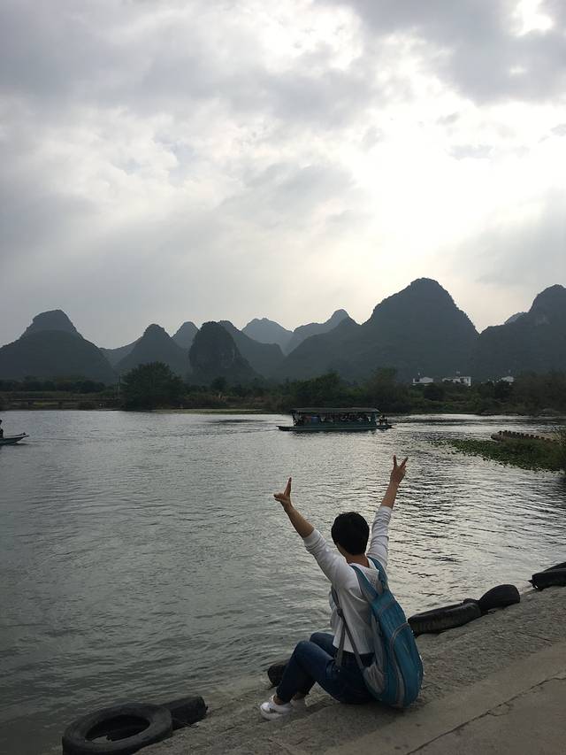 到了西街,马上放下行李,就冲冲忙忙的坐竹筏游漓江了,找熟人拿的票,55一位,说实话景色一般,可以不游,(推荐去游世外桃源)而且还会带你到定点拍照片,要收费的,不过可拍可不拍,我稍后传上照片,你们可以看下文字配图!