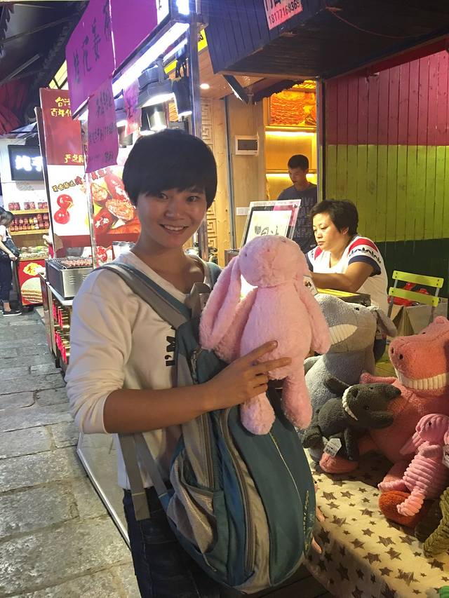 最开心的是挑到了一个心爱的玩偶,粉色的而且超便宜,老板说是清货,才30块钱!整晚都抱着它睡!