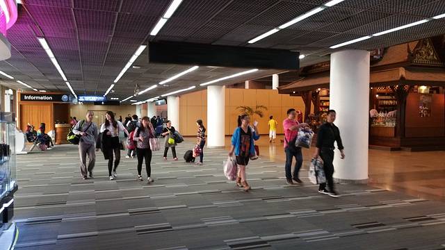 下飞机后,顺着人流和清晰的指示标识,很顺利就能走到海关入境大厅,办理入境通关事宜。因为我的泰国签证在昆明就已提前办好,所以直接走到海关柜台过关入境,然后下楼提取行李。让那些落地签的人慢慢等着吧