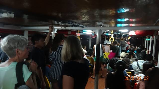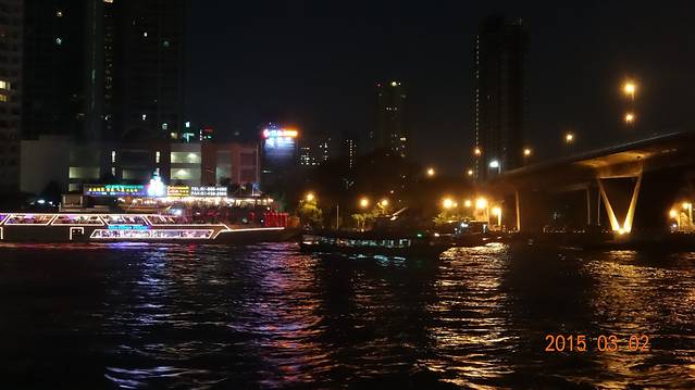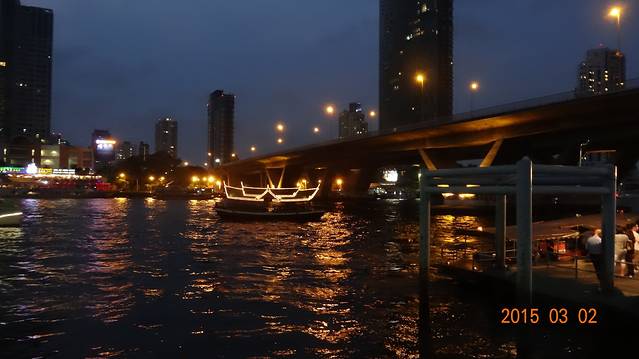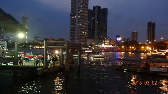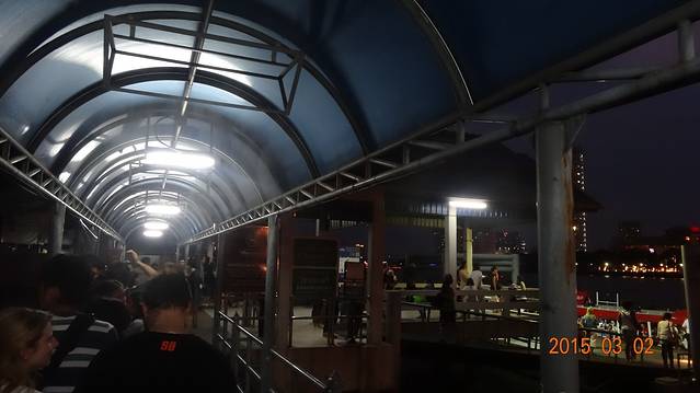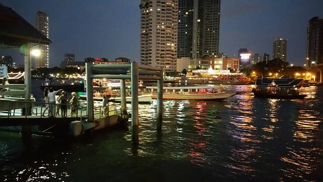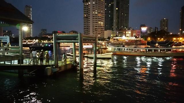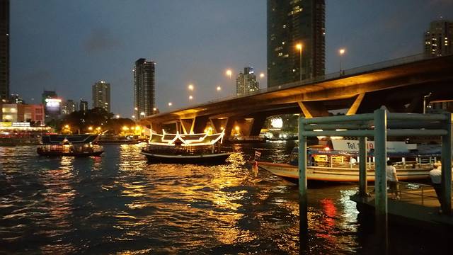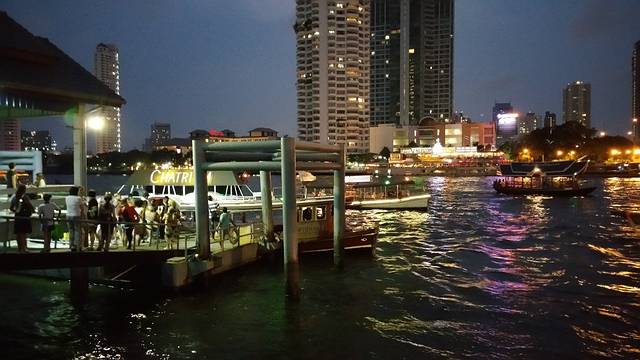 大家去亚洲码头可以搭乘BTS至Saphan Taksin站下车,从2号出口出站,之后根据指示牌步行前往Sathorn码头,转乘亚洲码头提供的免费Shattle boat轮渡,摆渡船时间:17:00~23:00,每30分钟一班,免费船需要排队,通常要等得久一点,亚洲码头另有一种付费的摆渡船,20铢一位,很快就可以出发。时间很赶的话,坐付费的也无妨。虽然下午5点亚洲码头才有免费船过去,但建议4点半就可以去那排队了。