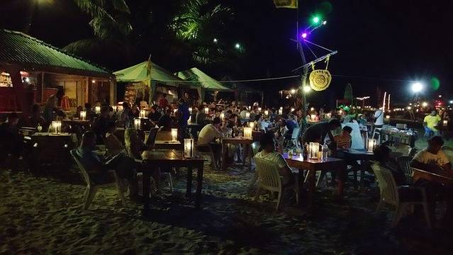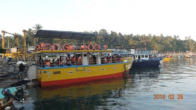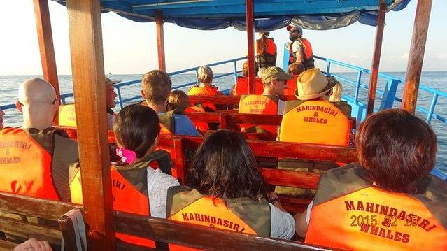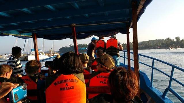 美蕊沙海滩上,一字排开有好几家向游客销售赏鲸半日游行程的摊位,和泰国皮皮岛上那些有正规门面的旅行社不同,这里的赏鲸公司基本上就在沙滩上搭一草棚,他们会写上它家今天出去看见了几只蓝鲸、及群海豚以招揽游客。除了销售赏鲸的行程外,还兼营冲浪板租赁的生意,一路上几家公司问了下来,赏鲸半日游的价格大概在2500~3000卢比/人,乘船地点在距离海滩五分钟车程的harbour。