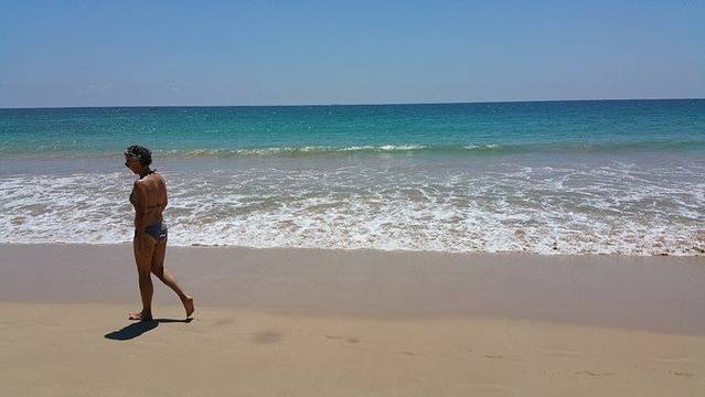 这“背时”的房间实在是越看越来气,刚脆直接锁门走人,出去外面海滩上看着晶莹透彻的印度洋海水,踩着细软绵延的金色沙滩还心情舒服点。