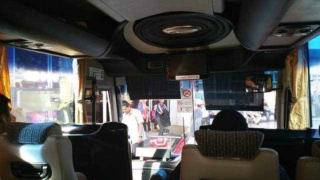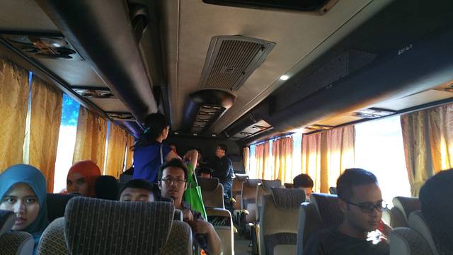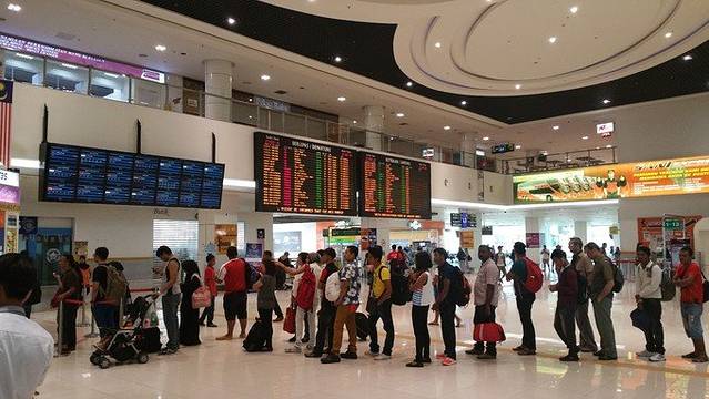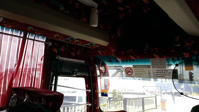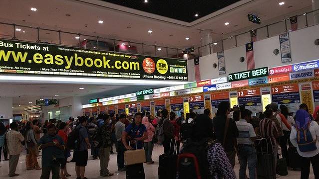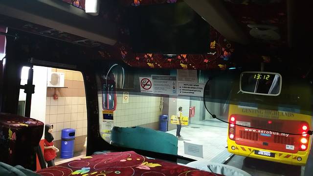 回到马六甲长途汽车站(Melaka Sentral Terminal Bus),和乘坐前往市区的巴士一样,先找到长途大巴的发车点,各个运输公司的大巴会在这里依次呈扇形排布,除了大巴车身外,在每个大巴乘车点的最前方,也都写有对应运输公司的名称,而大巴车驾驶室的车窗玻璃上也贴有开往地点的英文打印纸。