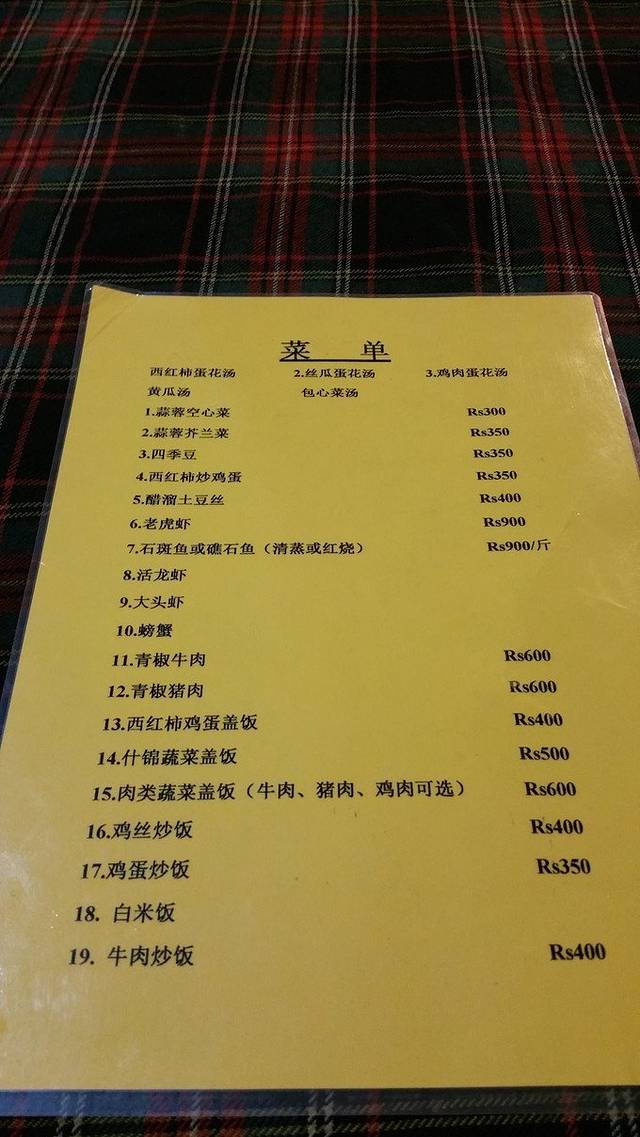 坐下没多久,陈伯就把菜单拿给我们,一看这菜名,熟悉的家乡气息扑面而来,再看价格,真的很公道,都说在国外吃中餐很贵,或许对于普通的斯里兰卡人来说,会很贵,但对中国游客来讲,陈伯家的定价真的已经非常实惠了。