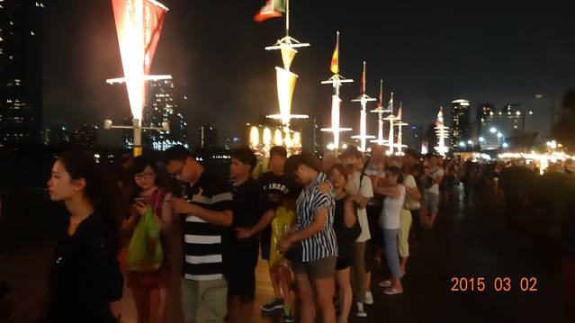 等候乘坐亚洲码头免费摆渡船的队伍。