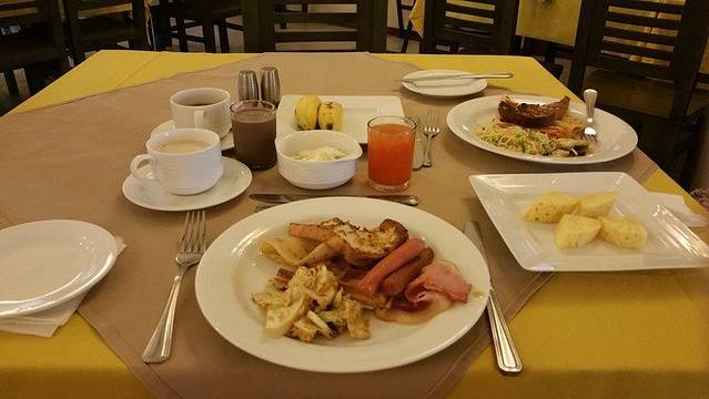 它家的早餐更是无语,居然把没熟的西瓜抬上来,菠萝也是腐烂的餐厅的茶杯和餐盘里则永远爬满了一大群的蚂蚁,这是要让爷吃昆虫餐的节奏么,土司和面包上也爬着不知名的黑色虫子,其他菜品一看就是头晚剩下的,桌椅和地面自然也是油腻腻的整间酒店服务生穿的工作服看上去也也是油腻腻脏兮兮的,整个酒店完全就一邋遢大王开的!