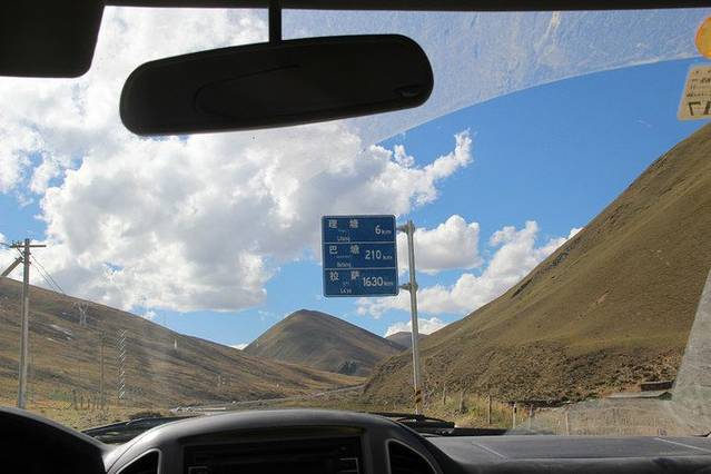 昨晚还很担心会不会遇上黑车司机,还好人气加持,都是善良耿直的boy。租到了一辆从康定直奔稻城的包车,除了我和00外,同行的有一对情侣,两个女孩子。又是400多公里,一直在路上。以前经常对人洗脑说“最重要的不是目的地,还是沿途的风景,和看风景的心情。”包车相比客运站的大巴车有个好处,就是到了景点/标志性的,可以喊司机师傅停留下拍拍照,走动走动,边玩边走。