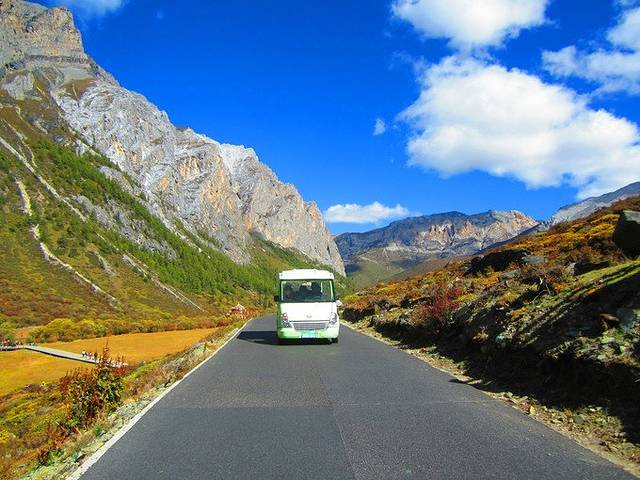 包车师傅送我们到亚丁景区门口,领取了门票后,就去做景区的观光车送我们到亚丁山脚下。从亚丁景区到压顶山,大巴车大概需要1个多小时的车程。亚丁风景区里面也还有民宿,不过很少,我们也没有预定成功。
