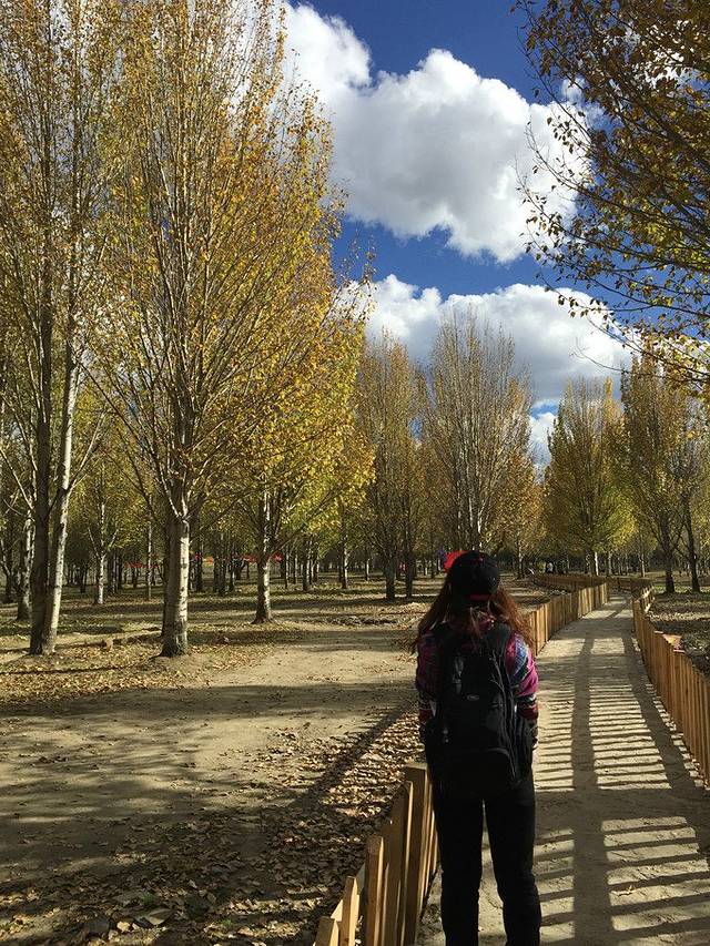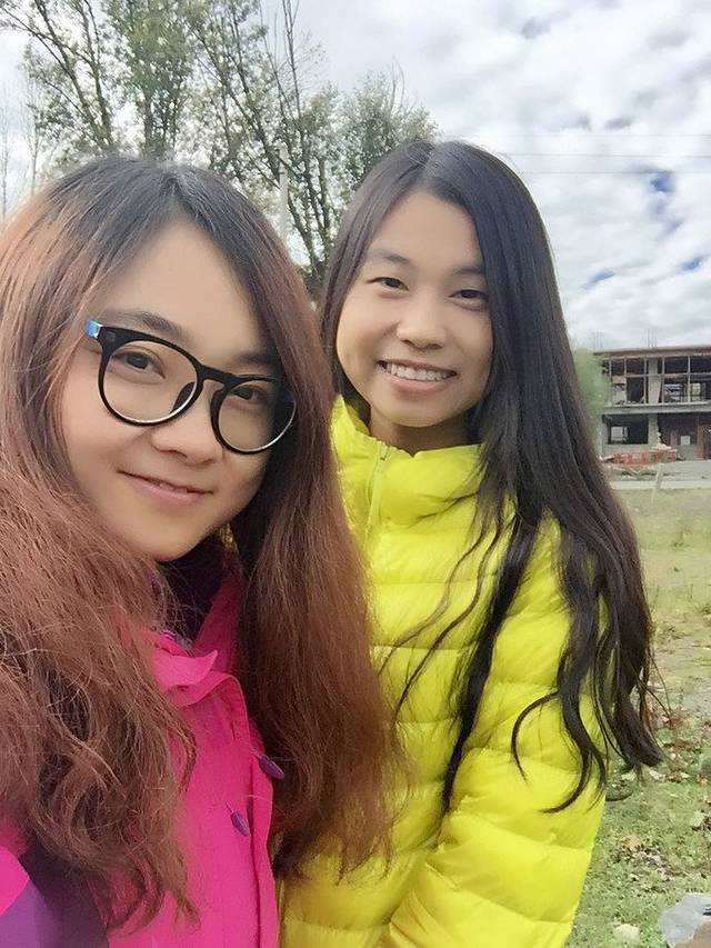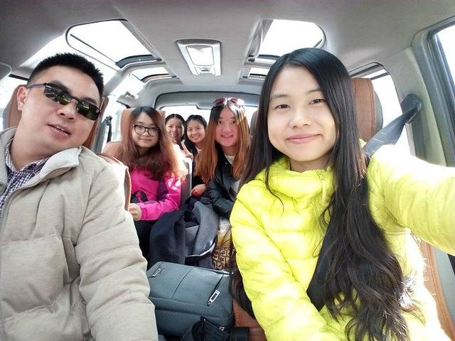 师傅停下来修车,准备接下来一整天的路程。我们跑到对面的土地上,开始自拍模式。哈哈~羽绒服颜色选得真好!在这天气下拍得特别鲜艳,自带美图效果。