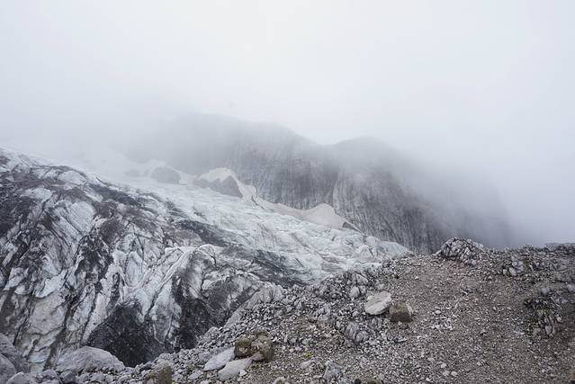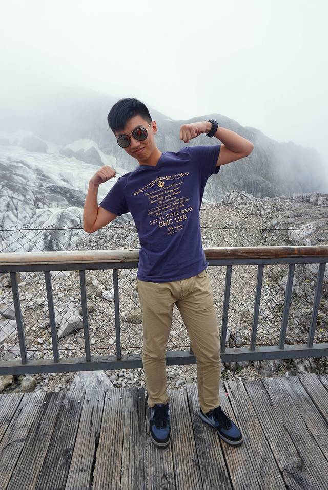 去到4680的登山平台,变形因为身体不舒服放弃了,我们五个只好让她在平台的咖啡厅休息,爬上去的时候会有觉得腿比较重,但是缺氧和高原反应不是很明显,不要长时间爬不会有问题,一路走走停停,趁着云开雾散赶紧拍照,去到4680五个人也都生龙活虎的,其实雪山上面的气温还是比较低的,但是为了拍照我们经常把冲锋衣穿穿脱脱。
