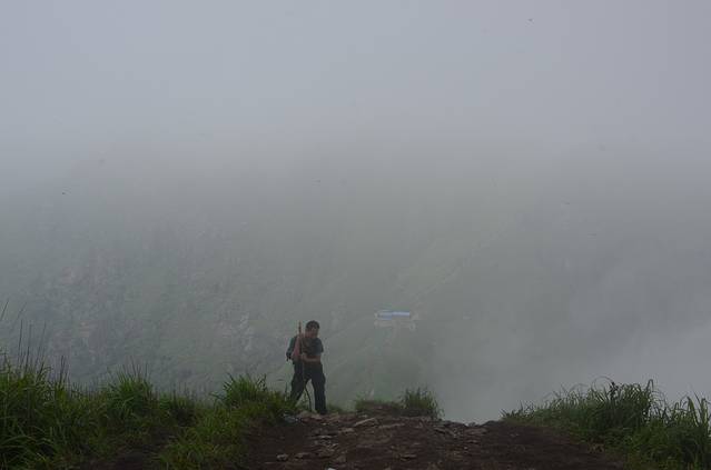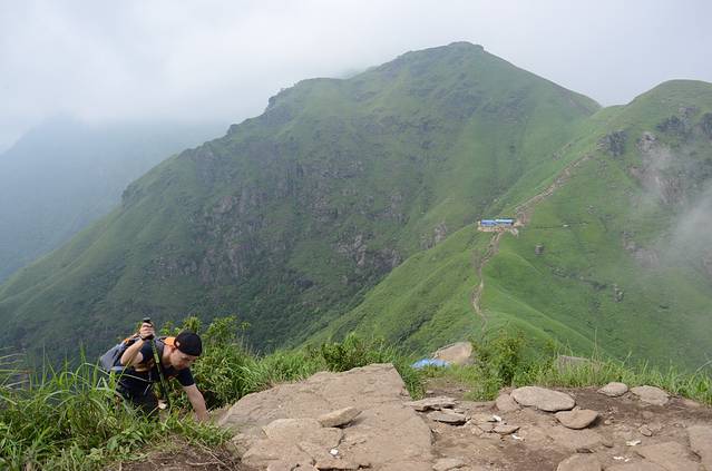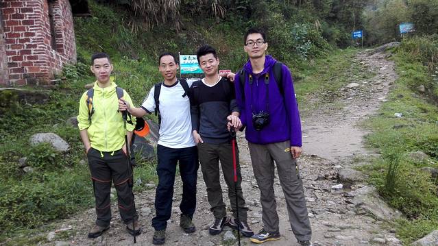 这个刚才装逼的小伙子,哇哈哈!他身后就是我们刚翻过的千丈岩,也是大坡之一