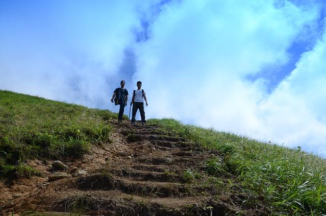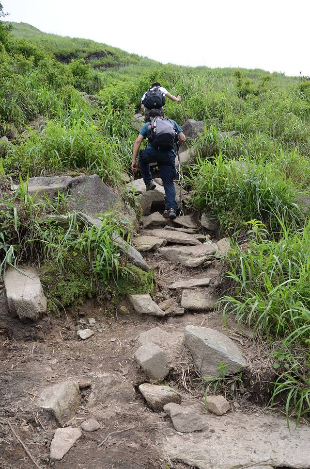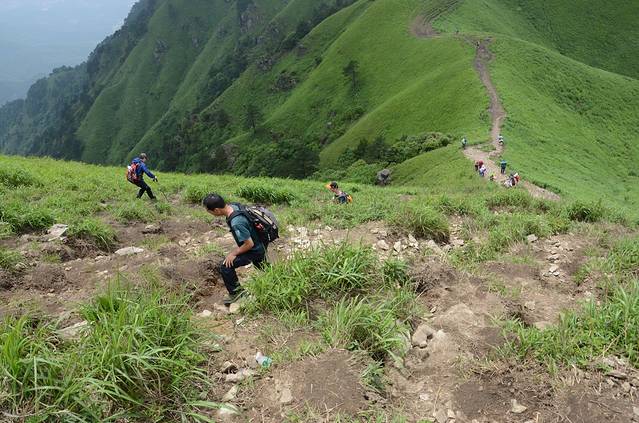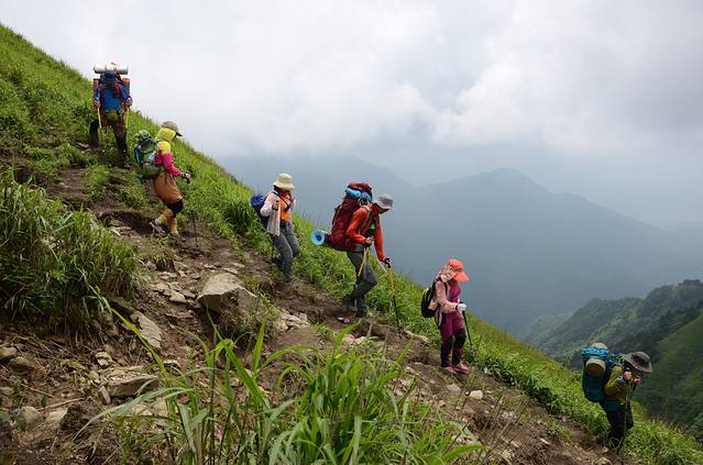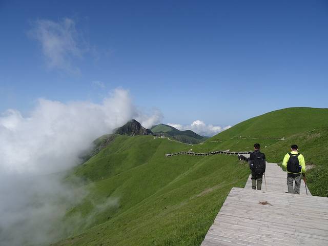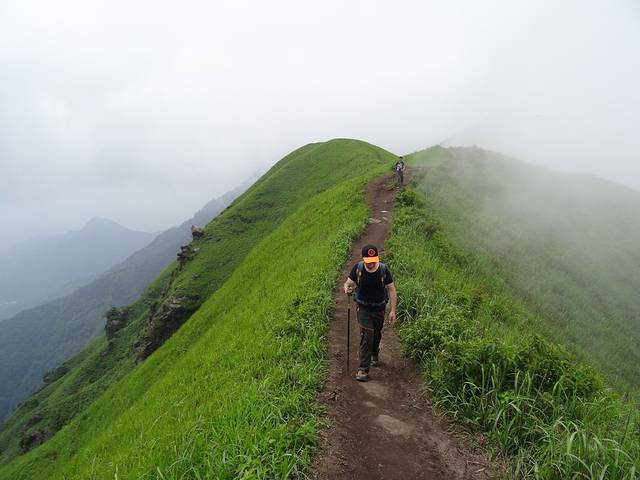 1、穿一对防滑的鞋,带上登山杖(龙山起点竹杆2元一根),带够饮用水就OK了,其它都是小事,相信自己,武功山并不难走!