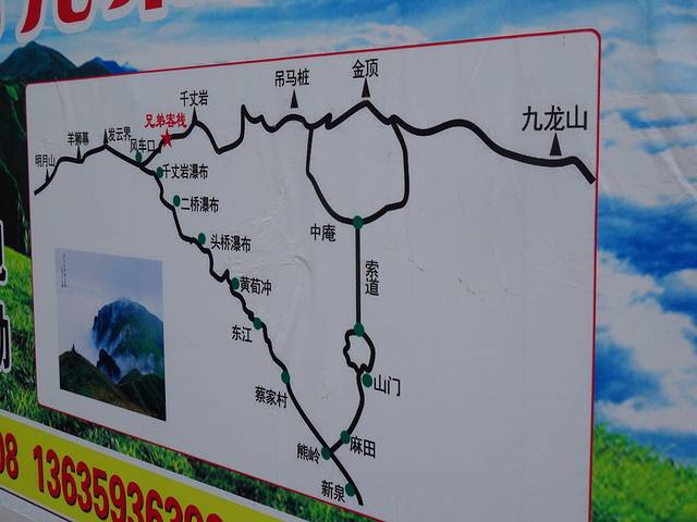 客栈墙上的地图,看着千丈岩与吊马桩之间笔直的绝望坡,都吓了我们一跳~~~~