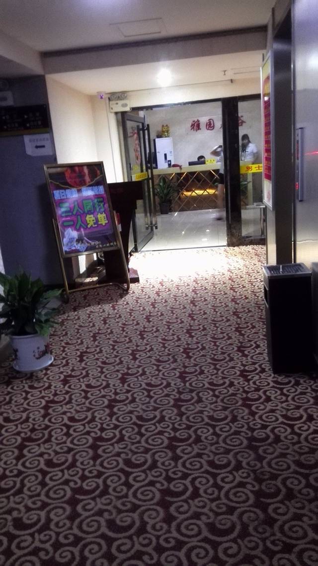 上了12楼,步出电梯,“三人同行,一人免单”的广告牌马上映入眼帘,=。=!