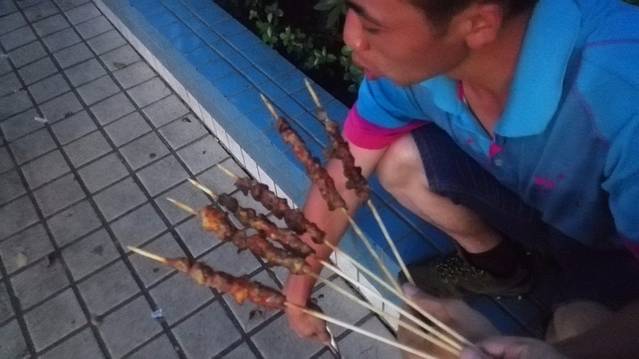 冲完凉肚子就饿了,到附近搞点新疆羊肉串吃吃