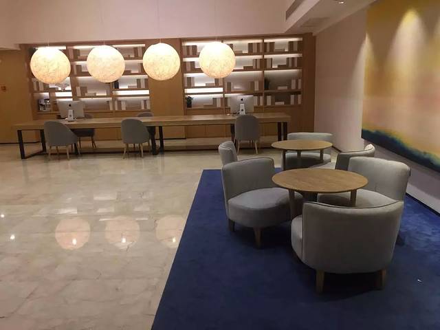 全季酒店大堂,可以免费使用大堂的苹果电脑上网,后面有自助咖啡机,还可以来一杯咖啡提提神。