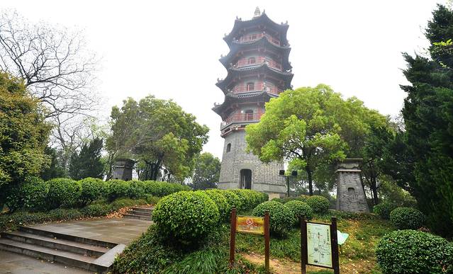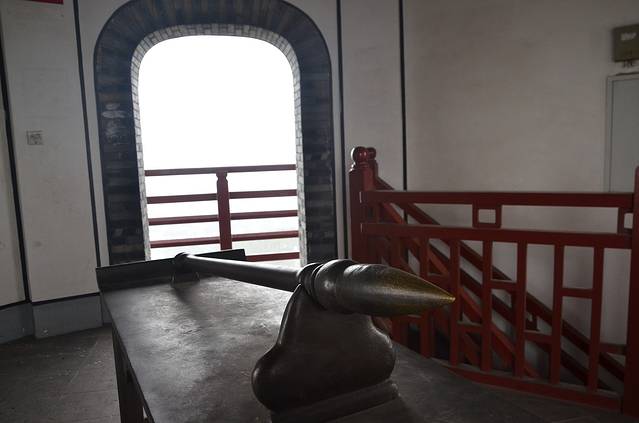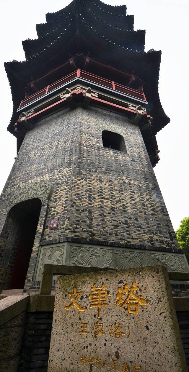 值得一提的是,文笔塔的登塔费仅两元,塔分5层,最高层摆放着一直硕大毛笔的铜像,游客罕至。登上此塔,晴天时可俯瞰绍兴全貌。可惜当时有点阴雨天气,能见度并不高。
