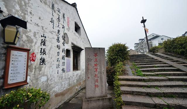 古镇里,和王羲之有关的历史故事标记比比皆是,比如“题扇桥”“题扇亭”“躲婆弄”“躲婆饼”王羲之涮笔的“墨池”“戒珠寺”等等,我们一边用相机捕捉江南水乡古镇的美景,一边在游历间回顾学习着文史知识,很惬意。